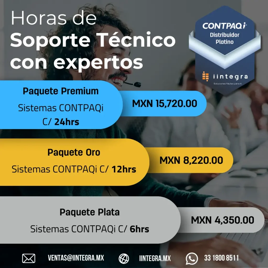 Experiencia y Especialización: Contamos con un equipo de profesionales altamente capacitados y con vasta experiencia en sistemas CONTPAQi®. Desde problemas técnicos hasta consultas sobre funcionalidades específicas, estamos aquí para asistirte en todo momento.